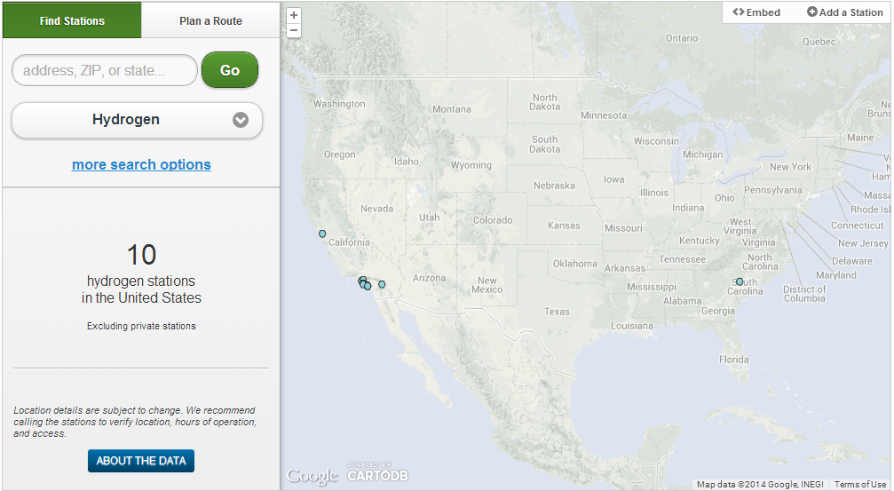 These are all of the publicly accessible hydrogen fueling stations in the U.S.: