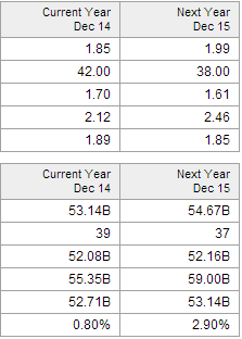 That said, with Intel's LTE ramp extending into 2015, the PC and tablet "merger" at the 14-nanometer generation potentially sustaining PC Client Group revenues going from 2014 to 2015, and growth in mobile apps processors implies that Intel could come in well ahead of these estimates. Oh, and if PC revenues actually come in better than expected during 2014, this once again bodes well for 2015 as the revenue base starts higher.