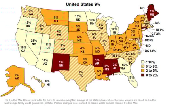 Home prices went up in every state from 2012 to 2013, as you can see in the table above. Homebuilder Meritage Homes (MTH 0.79%) reported that its average sale price for the fourth quarter of 2013 increased 13% from 2012, and that it has had 11 consecutive quarters of order growth. Will the first quarter of 2014 end that streak? Combined with the increase in interest rates, some have feared we are approaching another housing "bubble" akin to the situation in 2008 and 2009.