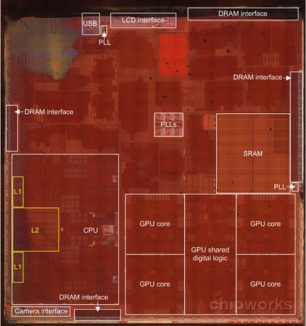 Take a look at the following picture of the A7 chip: