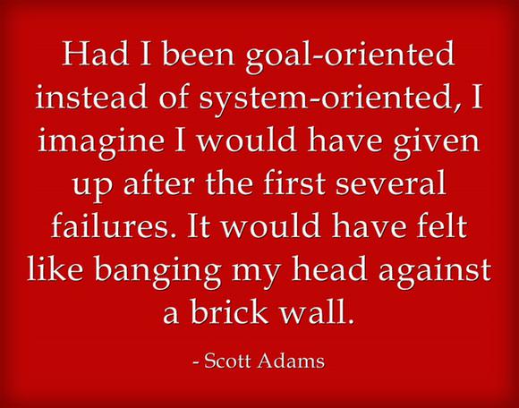 Goals can be a very discrete and absolute thing. You succeed or fail. When its done, its done. Goals are finite in this way. And as such, Adams wrote in the Wall Street Journal late last year that,