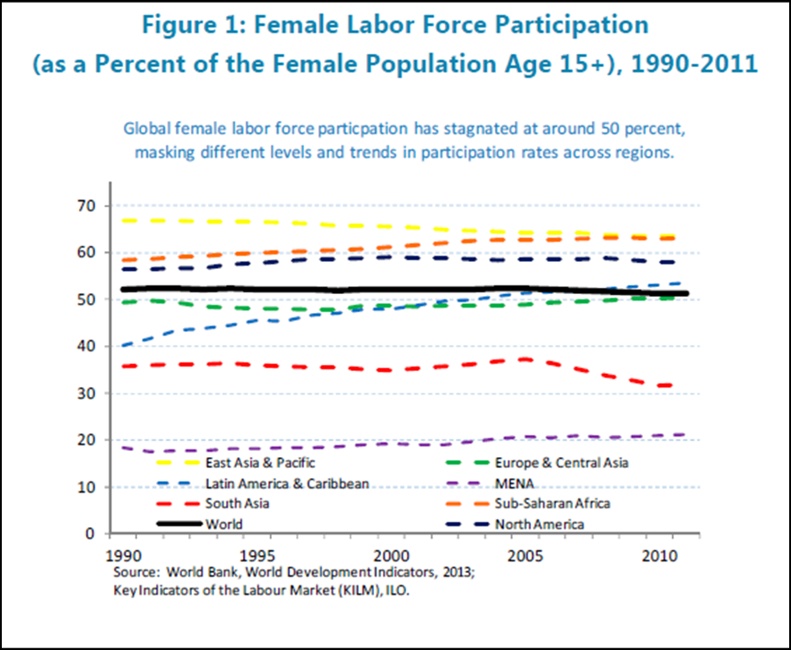 Source: "Women, Work, and the Economy: Macroeconomic Gains From Gender Equity" 09/13; Prepared by Katrin Elborgh-Woytek, Monique Newiak, Kalpana Kochhar, Stefania Fabrizio, Kangni Kpodar, Philippe Wingender, Benedict Clements, and Gerd Schwartz.
