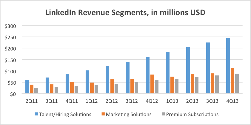 Since the IPO in early 2011, LinkedIn shares have risen over 300% and the company now has a price-to-earnings ratio around 855. Whether LinkedIn deserves that sort of P/E comes down to a personal choice on the company's growth potential. But understanding the company-specific monetization metrics can help inform that choice.