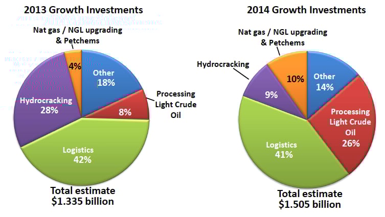 Valero Energy (VLO +1.31%) executives say the company in 2014 will invest $400 in capital projects to expand light sweet crude oil refining capacity. Even more fascinating is this capital budget is a whopping four times what Valero spent on similar projects in 2013.