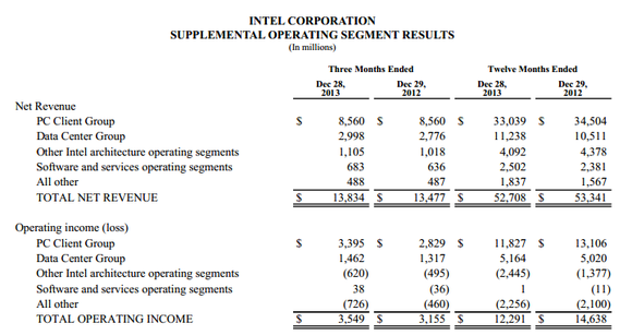 For convenience, the results from Intel's fourth-quarter report are reproduced here: