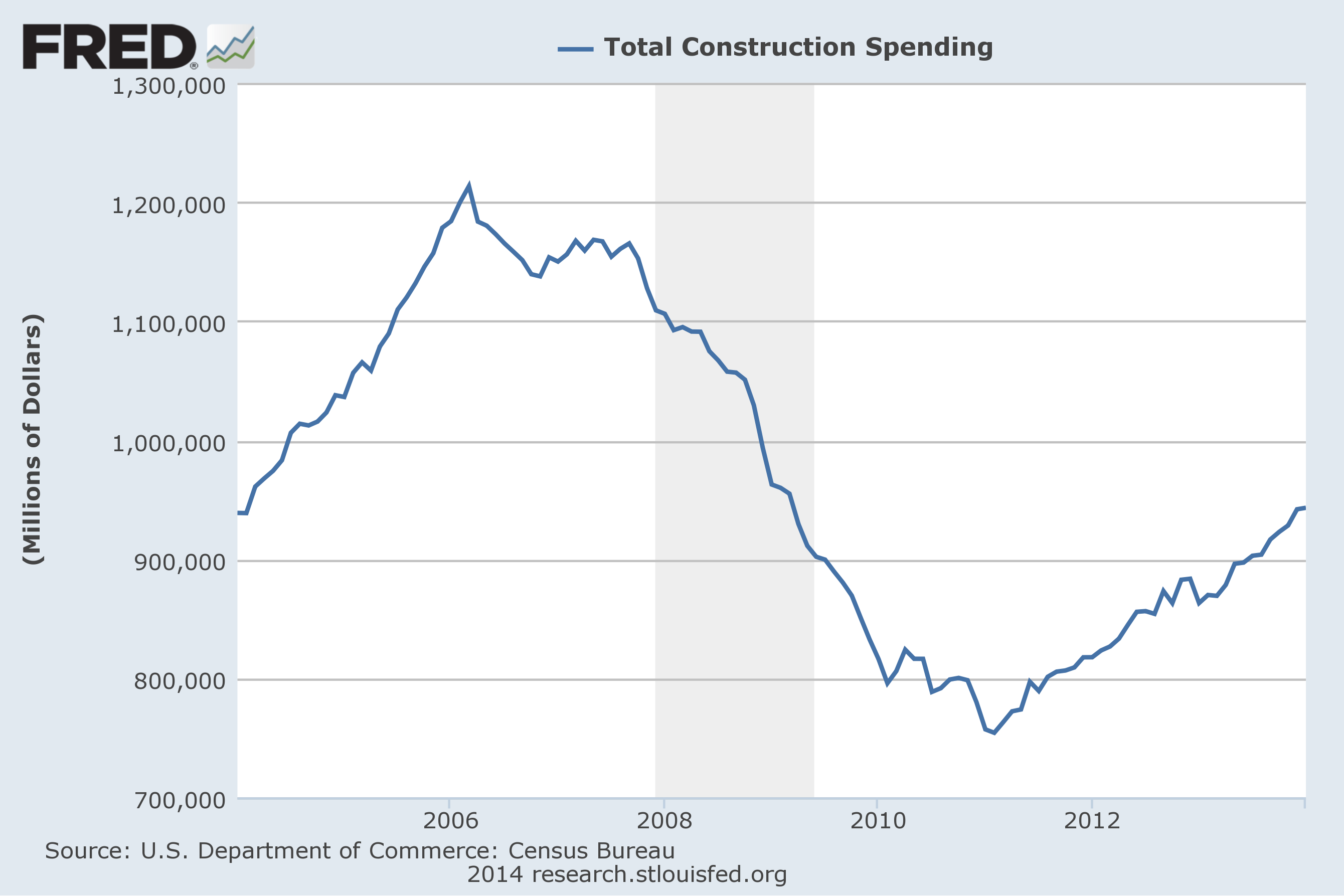 Investors will get an update on the construction industry from the U.S. Census Bureau this morning. Economists expect spending in the sector to come in at an annual pace of about $940 million, well above the post-recession bottom of $750 million set in February 2011, but also far from the $1.2 billion peak we saw in March 2006. Look for that report to be released at 10 a.m. EDT.