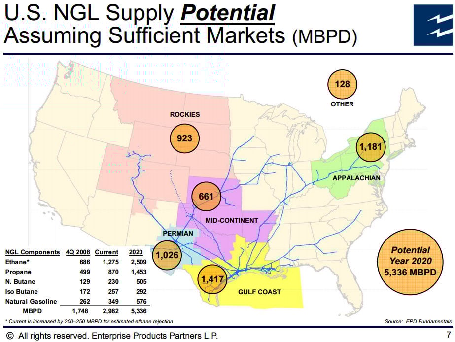 That slide shows the amazing growth in U.S. NGL production since 2008, as well as the potential growth in production by 2020. It's pretty amazing to realize that we've seen the production of ethane and propane both double over the past eight years, with another double from here likely.