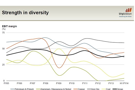 Operating profits by commodity. Source: BHP Billiton.