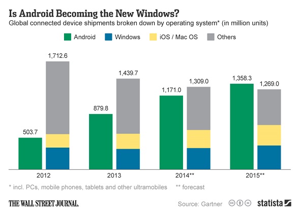 "The Windows operating system faces competition from various commercial software products and from alternative platforms and devices, mainly from Apple and Google," the company wrote in its 2013 annual report.