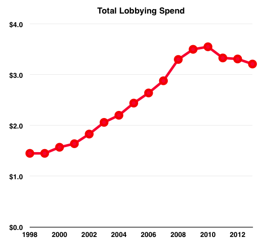 In 2013, lobbying expenditures topped out at $3.1 billion. That's a tremendous pile of cash, and as a result, shareholders are asking for some clarity at the company level.