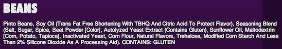Taco Bell's Bean Ingredients. Source: Taco Bell Website