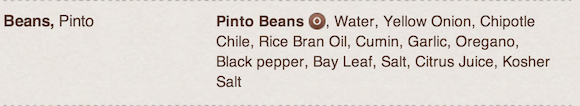 Chipotle's Pinto Beans Ingredients. Source: Chipotle Website
