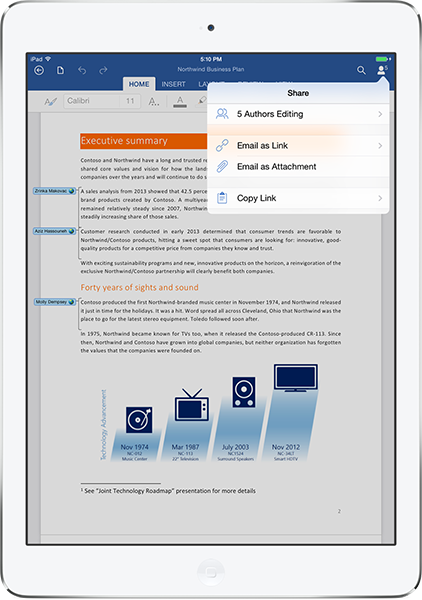 Microsoft Word for iPad. Image source: Microsoft.