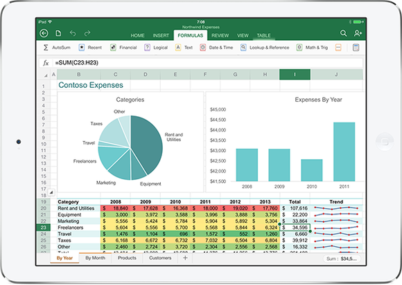 Microsoft Excel for iPad, available with an Office 365 subscription. Image source: Microsoft.