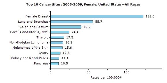 Next to prostate cancer in men, breast cancer lands as the second most-prevalent cancer diagnosis in the United States, with nearly 235,000 estimates cases per year, according to the American Cancer Society. Breast cancer is also the second deadliest type of cancer, behind only lung and bronchus cancer and slightly ahead of prostate cancer, based on statistics from the Centers for Disease Control and Prevention.