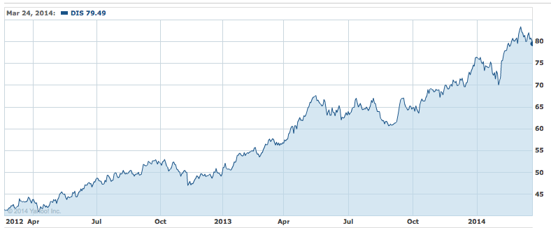 Disney shares are up more than 90% since Dec. 2012. Source: Yahoo!