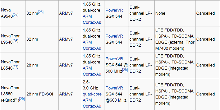 ST-Ericsson's NovaThor line of processors was an early casualty in mobile consolidation. Source: Wikipedia.