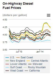 While gas prices increased, diesel prices declined, with a $0.016 dip over the past week to $3.959 per gallon. This latest price tag puts diesel $0.018 per gallon below the same time last year. Prices fell nationwide, but the Rocky Mountain region enjoyed the largest $0.020 dip in diesel. The West Coast saw diesel prices edge down just $0.008.