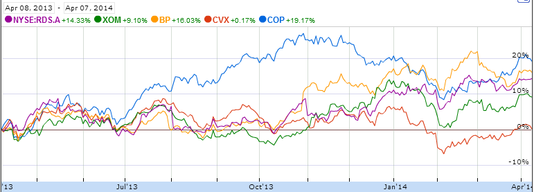 ConocoPhillips (COP 1.00%), the largest independent E&P company in the world, has outperformed most of its peers by a significant margin since the company spun off its downstream business in May 2012. Since the spinoff ConocoPhillips is up by 32%, while its competitors ExxonMobil (XOM 0.17%), Chevron (CVX 0.01%), BP (BP 0.78%), and Royal Dutch Shell (NYSE: RDS-A) are up by 13%, 12%, 10.5%, and 3% respectively during the same period.