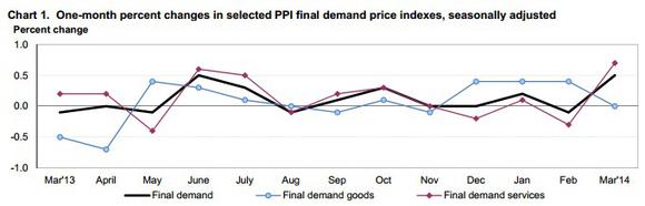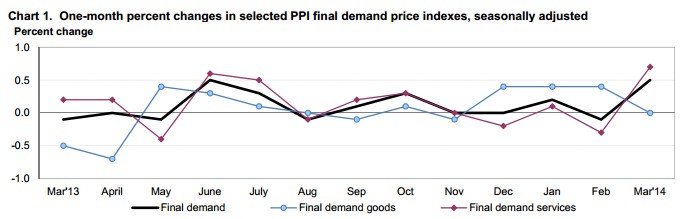 The Producer Price Index (PPI) for final demand increased a seasonally adjusted 0.5% for March, according to a Labor Department report (link opens as PDF) released today.