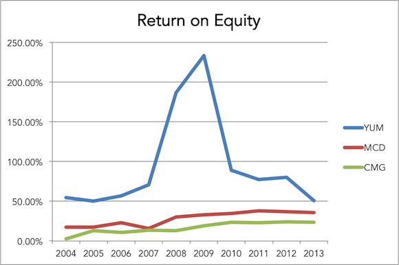 The return on equity, or ROE, figures for Chipotle Mexican Grill, (CMG 0.61%), Yum! Brands, (YUM 0.62%), and McDonald's Corporation (MCD +0.79%) may seem simple: a bigger return is better, right? Not so fast, you've gotta dig a bit to really understand where that ROE percentage comes from.