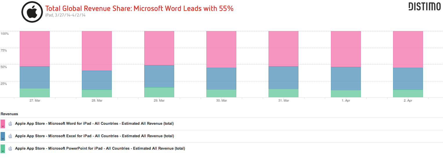 So it doesn't really matter which app iPad customers download if it leads to an Office 365 subscription. But the apps still take time and money to maintain, and Apple gets a 30% cut of the sales. So it's worth knowing which software has attracted the most monetization through the iPad.