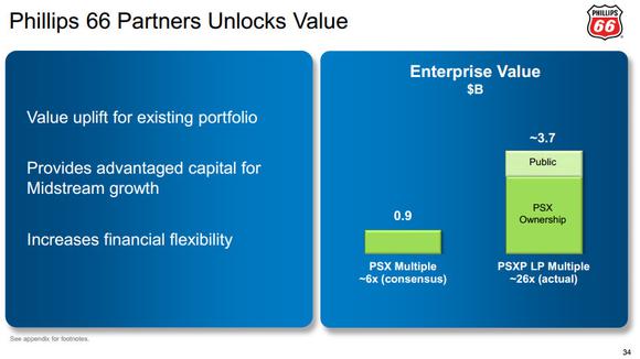 As the below slide from the analyst day shows, Phillips 66 has already unlocked tremendous value already by simply creating the master limited partnership.