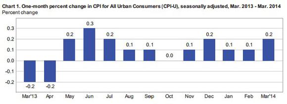 The U.S. Consumer Price Index increased a seasonally adjusted 0.2% in March, according to a Labor Department report (link opens as PDF) released today.
