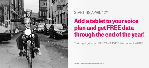 T-Mobile's latest promotion of 1GB of tablet data through the end of the year. Source: T-Mobile.