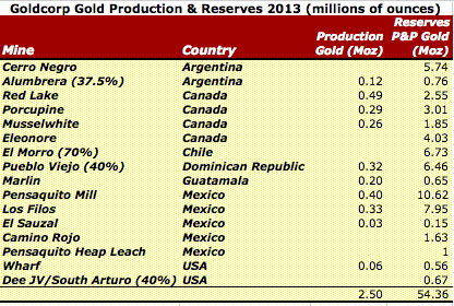Source: Goldcorp SEC filings. Excludes the Marigold project in Nevada in which it owned a 66.7% interest, as that was just sold to Silver Standard Resources on Feb. 3.