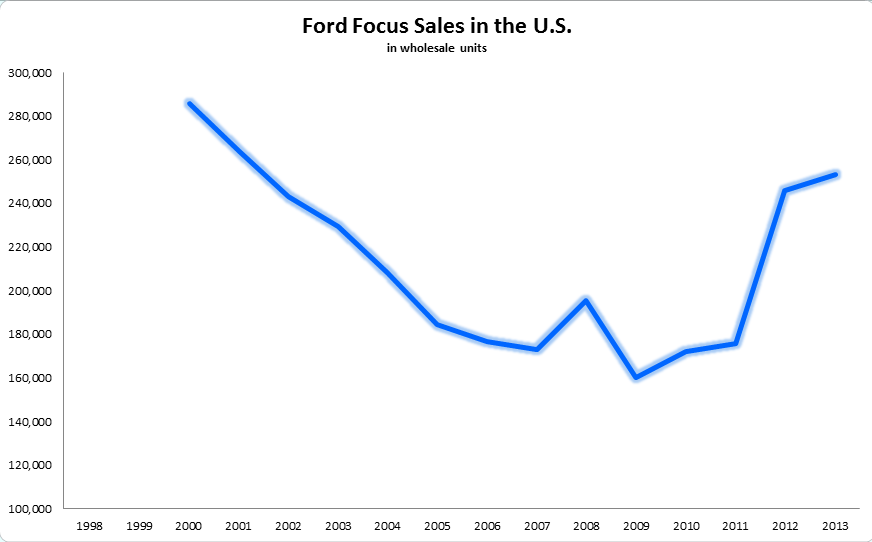 Sales of the Focus had declined in the U.S. market long before the recession; sales only recently spiked after management dedicated itself to the new "One Ford" strategy to develop more valuable, smaller, and fuel-efficient vehicles.