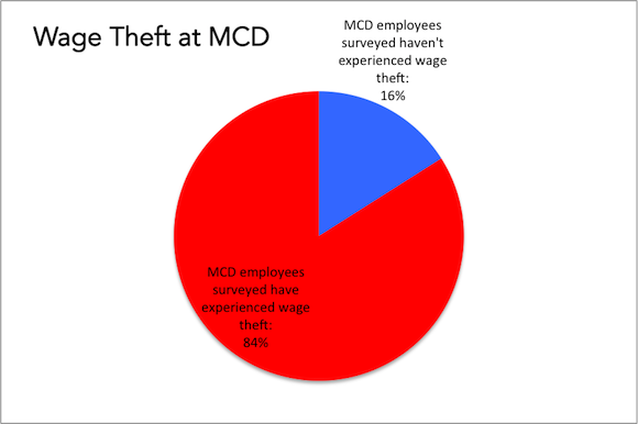 On top of limited growth opportunities, employees of franchised companies have been susceptible to wage theft. Being denied legally required breaks, doing work while off the clock, and not being paid for overtime worked are a few examples of this abhorrent practice. In fact, McDonald's franchise employers are currently being sued for exploiting corporate-provided computer systems in order to manipulate workers' hours. Practices like this run rampant in the traditional fast-food franchise model, as about 89% of fast-food workers have reported being victims of wage theft.