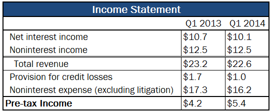 As shown in the chart below, when considering Bank of America's profitability after excluding litigation costs, from the first quarter of last year relative to the first quarter of this year, the bank exhibited significant improvement: