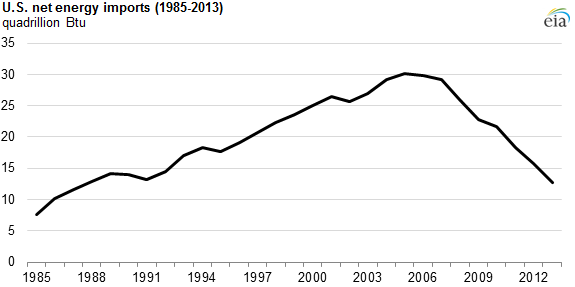 As a result, the EIA noted that energy imports into the US have reached their lowest level in 20 years.