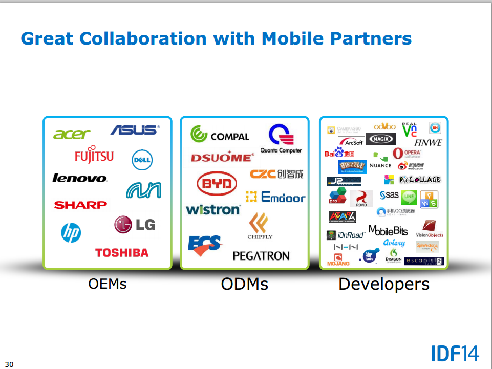 At the Intel (INTC +1.35%) Developer Forum, Intel gave a presentation detailing its current family of tablet chips codenamed Bay Trail or, for those who like product names, the Z3700 series. In this presentation, Intel was pretty bullish on this product family and even went so far as to reveal a list of hardware partners that were likely to deploy products based on these chips. Samsung (NASDAQOTH: SSNLF) wasn't on this list.