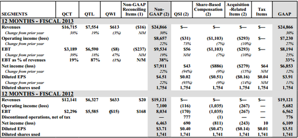 Indeed, QCT -- the chip division -- did $16.7 billion in sales, and generated $3.189 billion in operating income. Now, given that the cost of the equipment and services revenue was $9.82 billion, this implies that Qualcomm's operating expenses here were $3.69 billion. It's tough to imagine that $2 billion of that spending -- in light of all of Qualcomm's CPU, GPU, ISP, etc. IP -- is going to the modem, as important as it is.