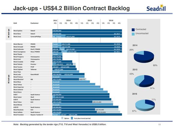 Seadrill has a dozen units in the Gulf of Mexico, including five jack-ups. The company also has eight newbuild jack-ups that are uncontracted, while 20% of this year's overall jack-up capacity remains uncontracted, as the following slide shows.