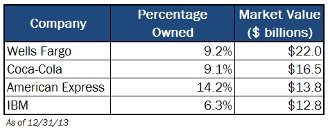 While we're on the subject of the aforementioned investments, it must be noted how much Buffett owns of some of them: