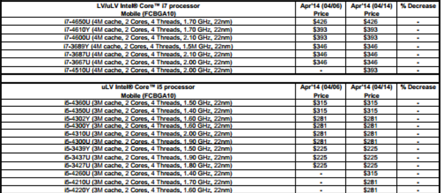 The cheapest low power, Haswell-based i5 is listed for $281 while the most expensive low-power i7 goes for a whopping $426. Let's call the blended ASP of Apple's potential mix about $350 based on these numbers. If that were the case, then Apple would have contributed about $1.45 billion in sales to Intel. In the most recent quarter, Intel did $12.8 billion in total sales.