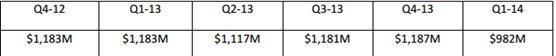 The valuation is derived by taking management's 2014 guidance and making projections based on IDC and Gartner data, using free-cash-flow methodology. Revenue and net income is as follows: