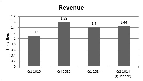 The company posted revenue of $1.40 billion this quarter, which translates to a 12% decrease sequentially and a 28% increase on a year-over-year basis. The year-over-year figure is more relevant, as the nature of AMD's business is cyclical.