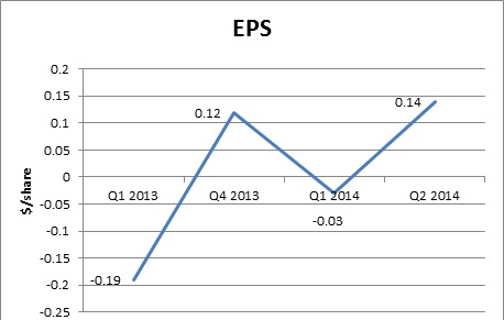 AMD posted a net loss of $20 million, as opposed to a loss of $146 million in the same quarter last year. We can see in the graph below that earnings per share improving -- apart from cyclical changes, the trend is an upward one.