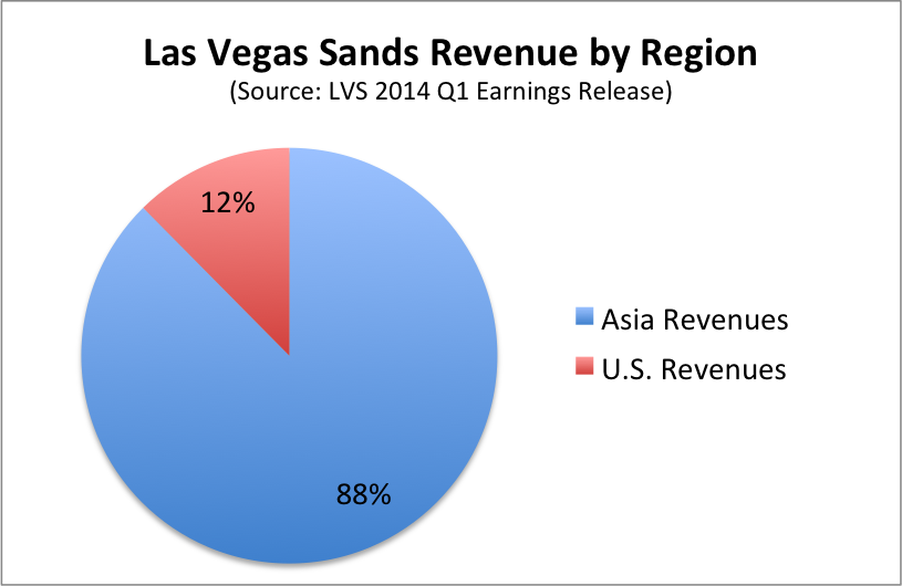 Las Vegas Sands, by contrast, has made a much bigger bet on this region, and has clearly won on its Asian bet. This not only includes Macau, but Las Vegas Sands also gains revenue from operations in Singapore, and is a front runner to win a bid for a casino in Japan.