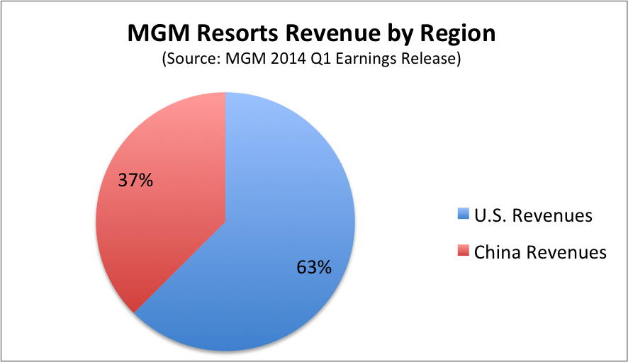 Las Vegas Sands reported net revenue during Q1 2014 of a record $4.01 billion, up over 21% YoY. Additionally, continued strong growth in Macau with nearly 50% EBITDA growth makes it the industry leader so far. While MGM Resorts posted solid results from China operations, it is still earning most of its revenue from U.S. operations, including a struggling Las Vegas and U.S. Northeast region.