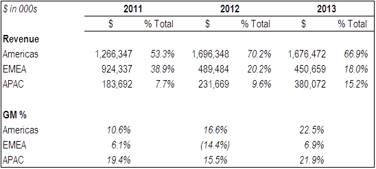 Finally, SunPower has pointed to strengthening in its Europe-Middle East-Africa (EMEA) business, which has long represented a significant chunk of revenue. If the European market in particular continues to strengthen, SunPower will be well positioned in the world's top three non-U.S. markets (China, Japan, Europe). That bodes well for SunPower, which is already well positioned in the U.S., projected to be the No. 3 overall market in 2014.