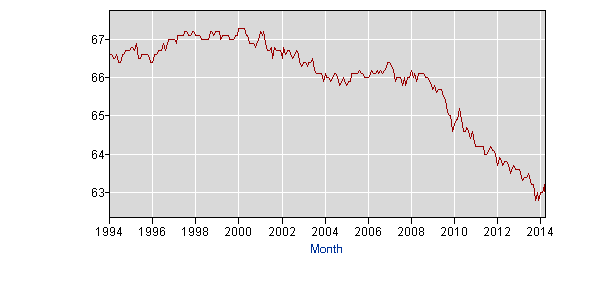 U.S. labor force participation rate. Source: Bureau of Labor Statistics.