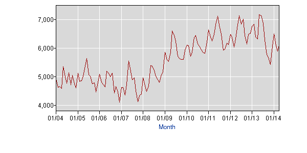 Although this figure has dipped since its high in May 2013, it's still no lower than it was five years ago. The translation is that we have nearly 6.1 million people out of work who want a job right now, compared with less than 5 million before the recession.