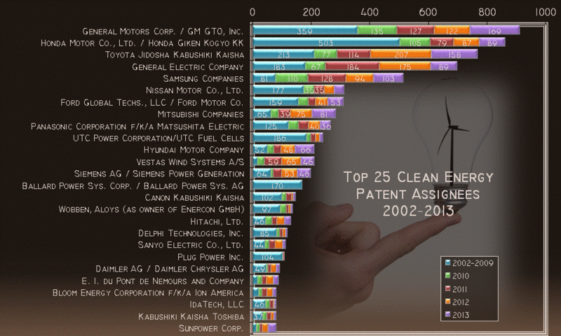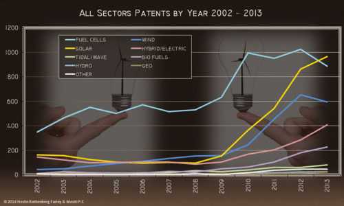 Last week, the Cleantech Group and Heslin Rothenberg Farley & Mesiti P.C. co-released their 2013 Clean Energy Patent Growth Index, which tracks clean energy patents issued by the United States Patent and Trademark Office. The index is meant to depict a trajectory of innovative activity in the clean energy sector. Among its highlights: