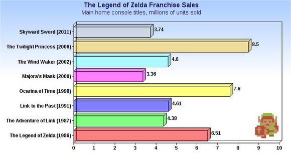 While Twilight Princess, which was launched on both the GameCube and Wii, was the best-selling Zelda title ever, Skyward Sword was the second-worst selling title in the series after Majora's Mask for the N64.