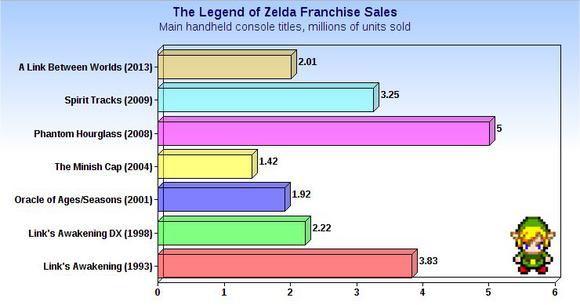However, a comparison between A Link Between Worlds and previous handheld Zelda titles also reveals a steady decline in sales.